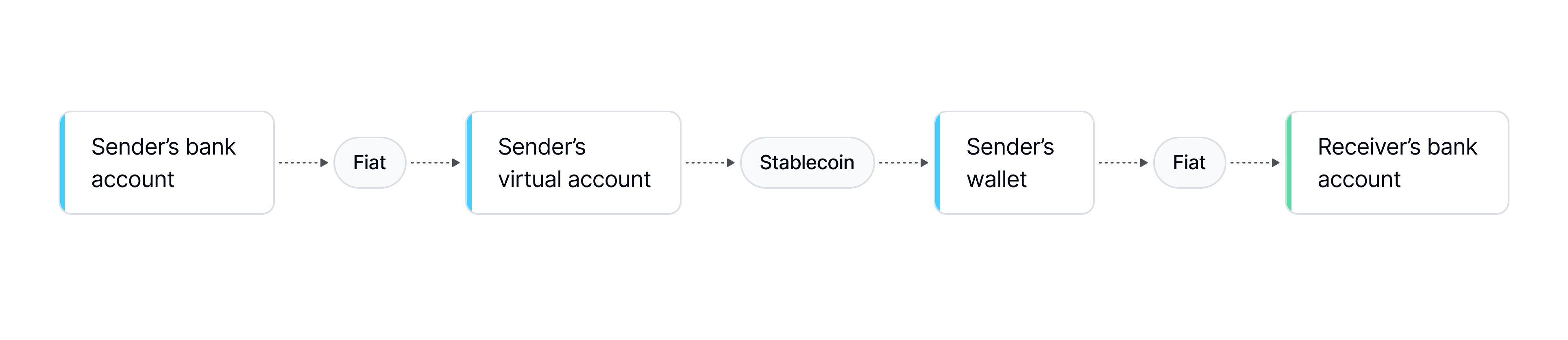 Convert between fiat and multiple stablecoins. Bridge handles blockchain logic and monitoring for you.